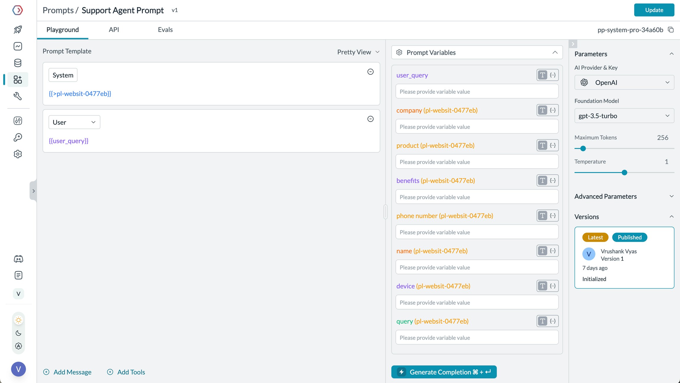 • Use Prompt Versioning to track changes to your partials